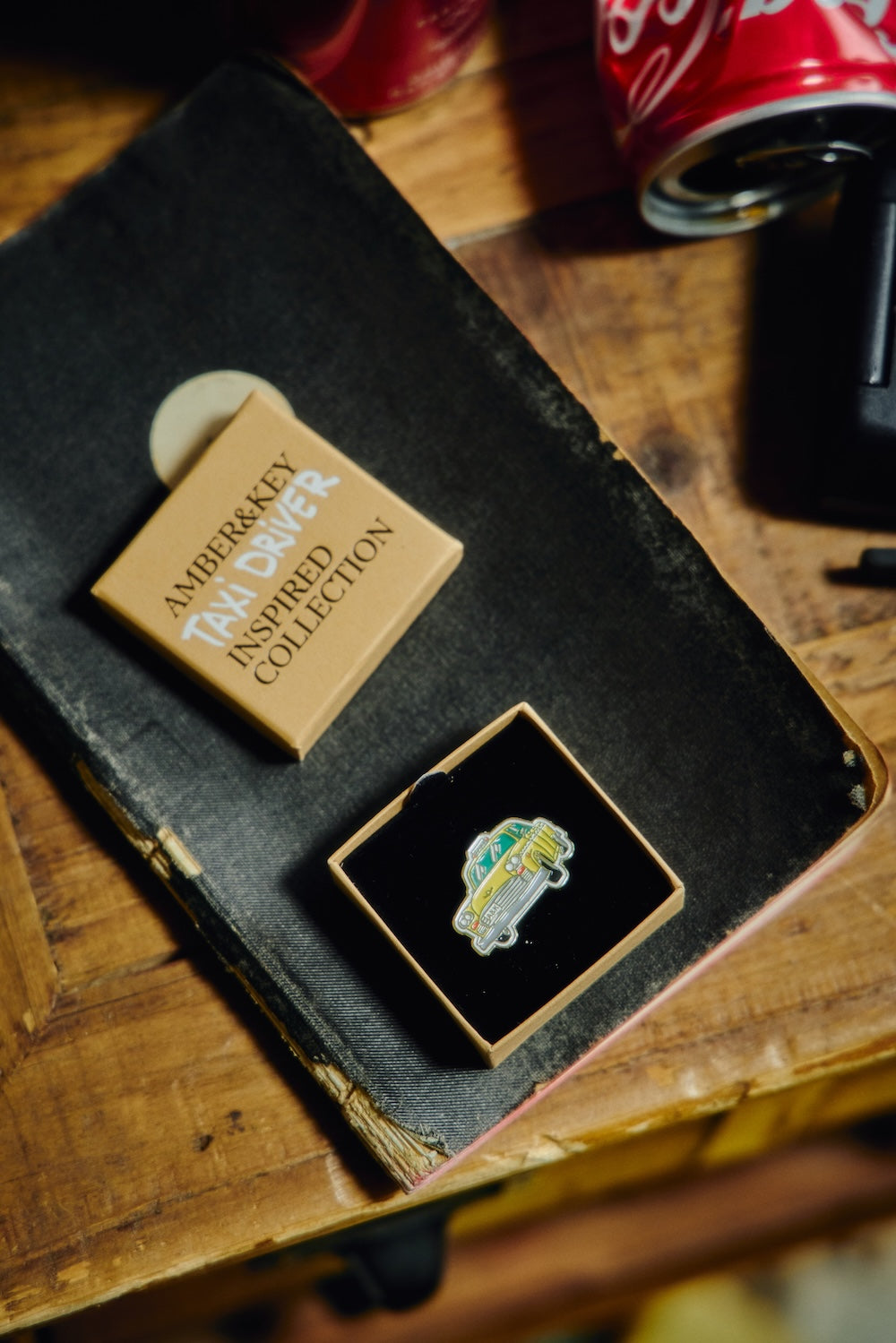 Amber&Key metal pin featuring brand symbolism, designed in the shape of the taxi driven by the protagonist in Taxi Driver.
